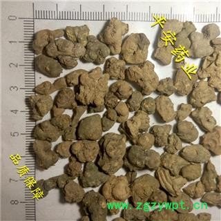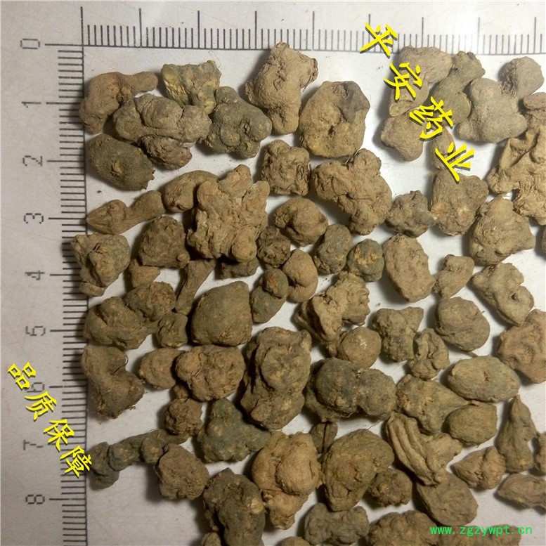 【性    状】黄褐色类球形或不规则块。质硬,表面灰黄或暗绿色,有瘤状突起和不明显的细皱纹,顶端钝圆,可见茎痕四周有淡黄色点状 ,断面黄白色或黄色,有的略带粉性