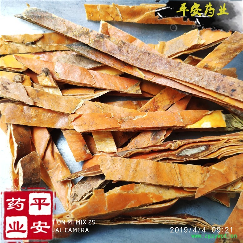 【性 状】表面橙红色或橙黄色,皱缩,有的有残存果梗;内表面黄白色。质较脆易折断。具焦糖气,味淡微酸