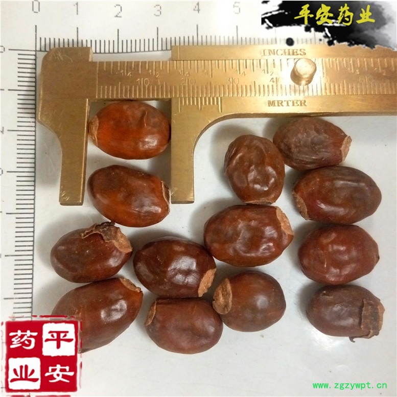 【性 状】呈长圆形,表面棕红色,平滑有光泽,略有凹陷及细波纹,一端有类圆形黄棕色的种脐,质硬。