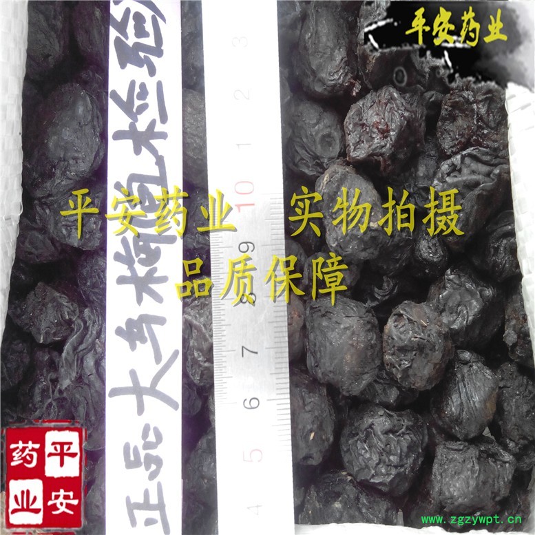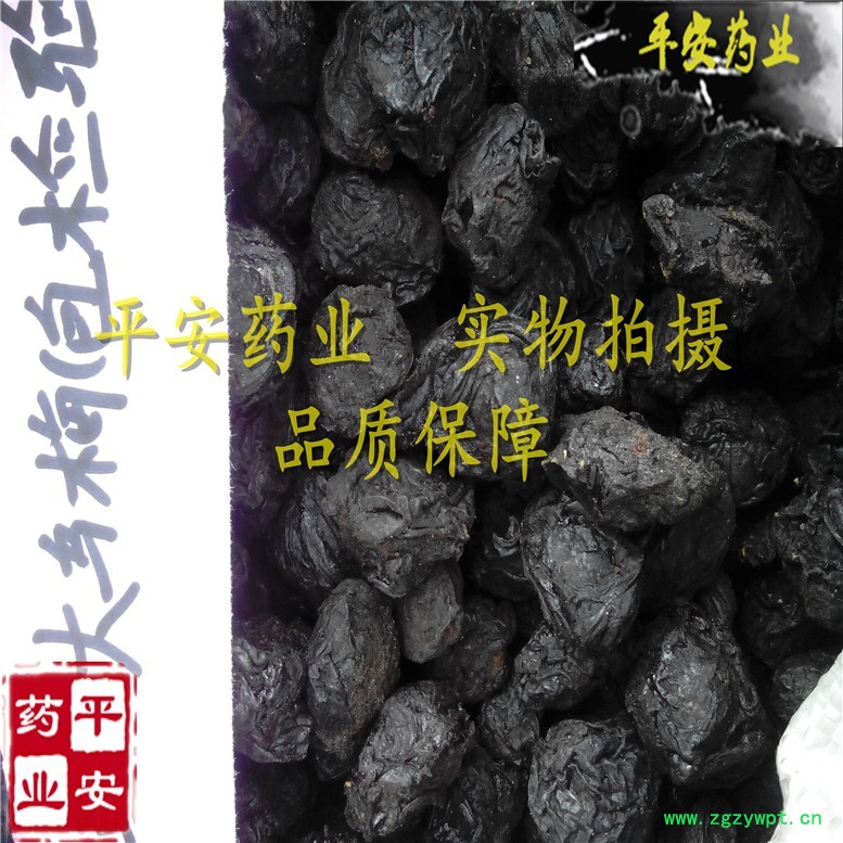 【性 状】呈类球形或扁球形,直径1.5~3cm,表面乌黑色或棕黑色,皱缩不平,基部有圆形果梗痕。果核坚硬,椭圆形,棕黄色,表面有凹点