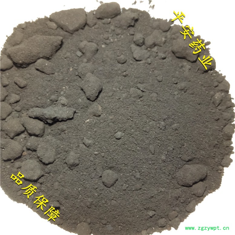 【性 状】为黑色粉末,或结成小颗粒状,间或有白色片状物,手捻即为细粉。质轻,入水则飘浮分散。无油腻感。无臭,味淡微辛。以乌黑色、质轻细、无杂质者为佳。