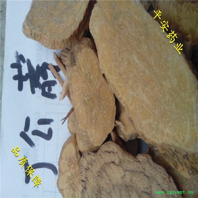 【性 状】类圆形或长圆形,切面黄褐色或浅黄棕色,异形维管束呈花朵状或块状,木质部的导管呈点状。