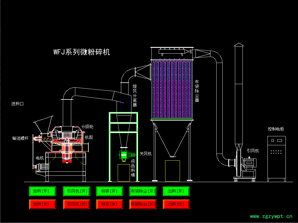 1.具有风选式,无筛,无网,粒度大小均匀等多种性能,生产过程连续进行。已达到国际先进水平。