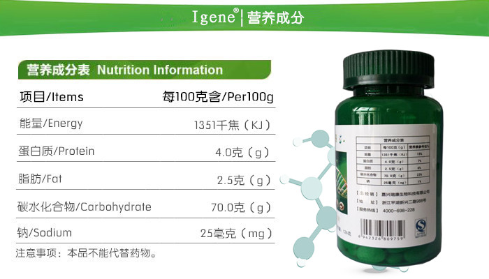 | 注意事项 | 本品不能代替药物,不宜与同类营养素补充剂同时食用 |