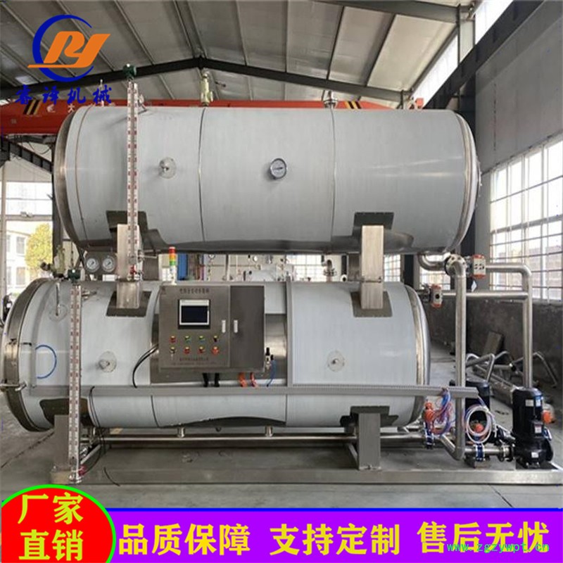 不锈钢杀菌锅自动化程度高,当盛装产品的杀菌篮推入杀菌锅后,只要按下启动按钮,整个杀菌过程,升温、恒温杀菌、加压、减压、冷却自动完成。高温杀菌锅食品的特色是,包装经抽真空处理,避免因氧化作用而产生的变色、变味,而且能延长保存期限,易于常温流通、贮存和销售。