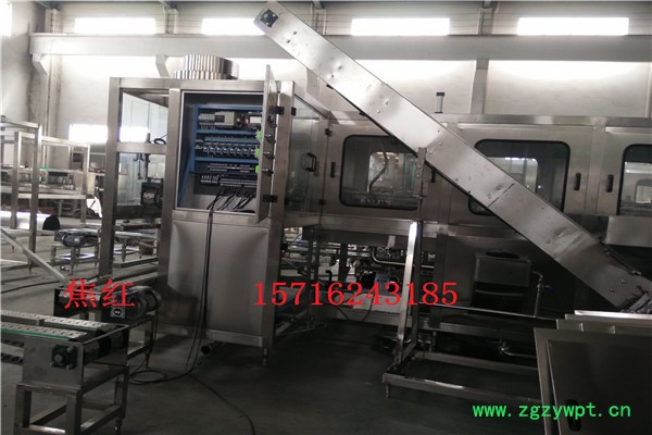 大桶水生产线成套设备 大桶水灌装设备 五加仑纯净水灌装机适用于生产5加仑(18.9L)桶装纯净水、矿泉水、山泉水、矿物质水。桶装矿泉水灌装设备包括消毒、冲洗、灌装、挂盖、压盖等5大功能。除桶装矿泉水灌装设备外,桶装矿泉水生产线还包括自动拔盖机、自动内刷机、自动外刷机、自动上桶装置、进/出桶输送、自动上盖机、桶盖消毒机、灯检、自动套膜机、蒸汽缩膜机、提桶套袋机、码垛机。