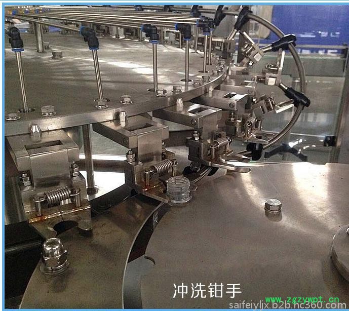 本系列设备用于绿茶,红茶,乌龙茶以及果汁饮料等产品的热灌装生产。该机集冲瓶,灌装,封口为一体。设计科学合理,造型美观,操作维修方便,自动化程度高,是热灌装饮品的生产设备。系列设备是本公司引进国外的饮料灌装设备技术的基础上,结合国内的生产经验研发的整机采用卡瓶颈悬挂运动工态设计,运用重力式定液面灌装原理,灌装速度快、液面控制稳、无滴漏的现象,采用磁力扭矩式拧盖头,实现抓盖、拧盖功能。结合水平回转式气力理盖器,具有不损坏瓶盖表面,料斗内缺盖发信号自动补充盖功能,与水接触的零件均采用SUS304不锈钢材料,主要电器元件采用日本三菱、法国斯奈德公司的产品,气动元件采用意大利康茂胜公司、日本SMC公司等国际厂家产品,适合用于聚酯瓶装各种果汁、果酒、矿泉水、纯净水等不含气饮料的生产,在一机上实现冲瓶、灌装、封盖。