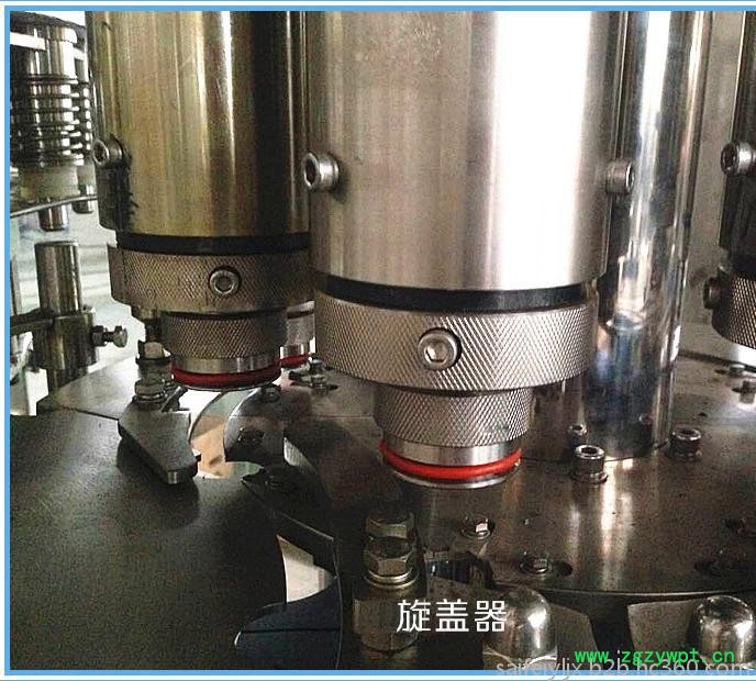 本系列设备集洗、灌、封为一体,适用于各种果汁饮料、茶饮料的热灌装生产,同时更换少量的零部件,便可用于纯净水、矿泉水的灌装。产量3000-36000瓶/小时,可供用户选择。采用先进的微负压重力式灌装原理,灌装快、稳、准,设有完善的物料回流系统,也可实现回流时独立回气,不与物料接触,减少物料二次污染及氧化。本机能满足95℃以下热灌装技术要求,灌装阀及物料进出管路无卫生死角,同时配有CIP自清洗接口,封盖前设有对瓶口RO水冲洗装置,以确保瓶口无发霉现象。采用磁力扭矩式拧盖头,实现抓盖、拧盖功能。拧盖力矩无级可调,具有恒力矩旋封塑盖功能。整机采用人机界面触摸屏控制、PLC电脑程序控制、变频器控制等先进技术。具有供盖系统自动控制、灌装温度自动检测、物料高温报警、低温停机并自动回流、无瓶不加盖、缺瓶等待、缺盖停机等功能。
