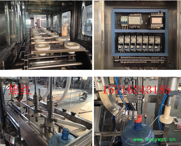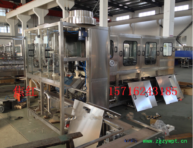 全自动大桶水生产线设备: 5加仑灌装机采用PLC控制**定位自动完成,全套设备采用高强度不锈钢材料、不锈钢板、精密氩弧焊接、变型小、焊纹美观;传动件为不锈钢结构,保证了机构在各种环境下正常运行;非金属件采用PP塑料等无毒高耐磨材料精心加工而成;传动电机、增压泵选用国内出口型系列不锈钢产品、电气组件采用进口系列或国内**系列精装而成,使性能更加稳定可靠。本设备由冲洗、灌装、压盖一体主机组成,适用于3-5加仑桶装纯净水的灌装生产。冲洗过程分三道工序:碱性液态除污剂(内,外冲洗)消毒水(内、外冲洗)纯净水(内、外冲洗)。碱性水、消毒水可循环使用。整个冲洗灌装封盖过程采用了PC可编程自动电脑控制系统,本设备有连锁、信号,自测等安全装置。 特点:整机由**不锈钢制成,结构合理、操作方便、动作准确是目前桶装饮用水生产线的理想设备。