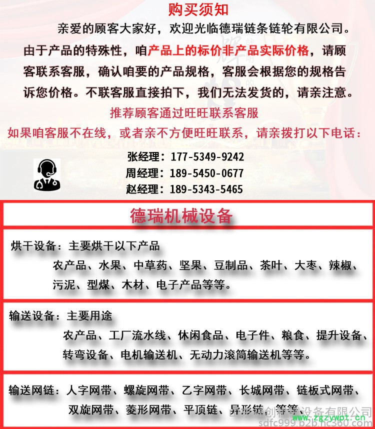 主营:烘干设备、输送设备、输送网链网带、链轮、链条等;