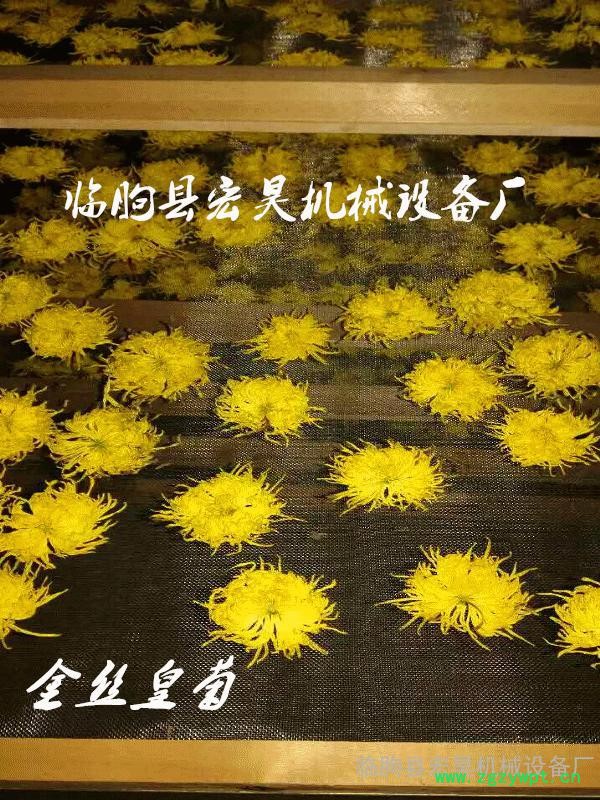 三、加温烘干法将需要处理的鲜菊花放置烤房、烘房的竹帘上或铺于烘筛、烘盘、烘干筐置于火炕,厚度3-5厘米,在60℃左右温度下烘烤,半干时翻动1次,九成干时取出晒至全干即为成品。这种方法烘干速度快,菊花质量好,出干率高。烘房可以有多种用途,除了烘菊花外,可以烘制核桃、蚕茧等多种物料。以前菊花通常放置于竹制盘、竹材金属混合的烘干托盘上,现在有金属格子、金属丝网烘盘、金属烘干托金属筐可以选择用来盛放菊花。因其轻便、外形光洁无毛茬、耐锈蚀等特点而被浙江杭州、安徽、河南洛阳很多菊业公司、生产菊花的农户青睐,用来取代竹帘、木质筐等老式的烘干筐、烘筛。