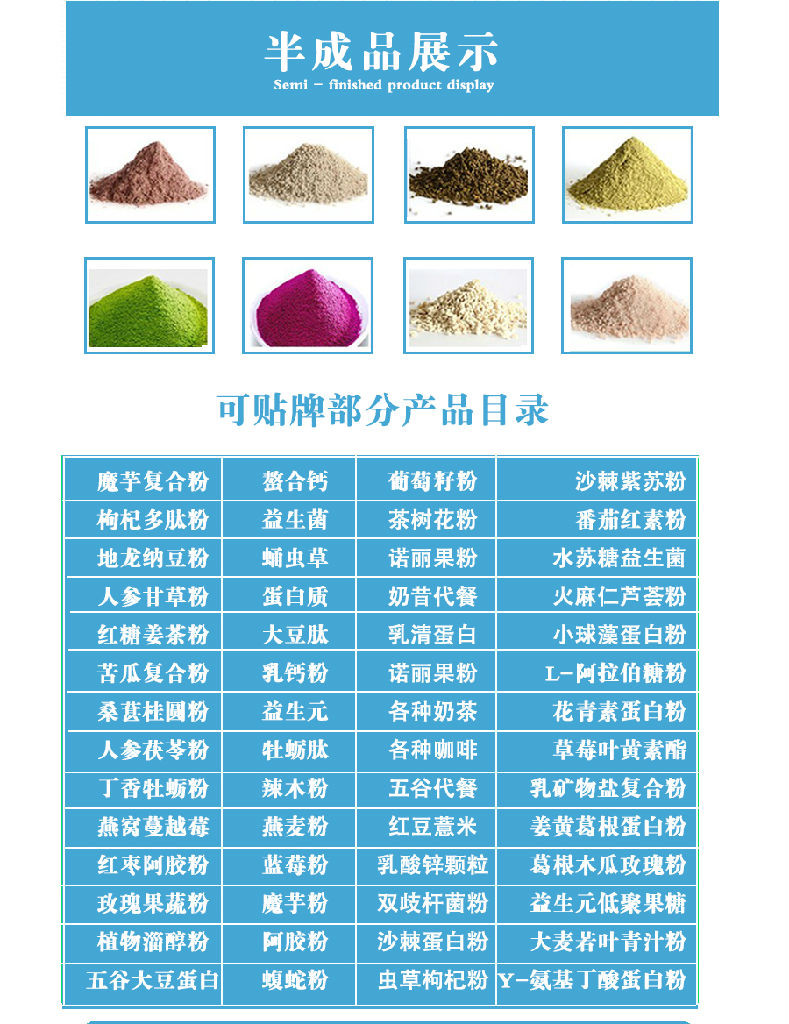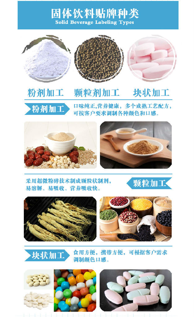 主要经营:OEM贴牌代加工,产品类型有:保健食品、软胶囊、固体饮料、颗粒、片剂、袋泡茶、泡腾片、压片糖果等等产品。