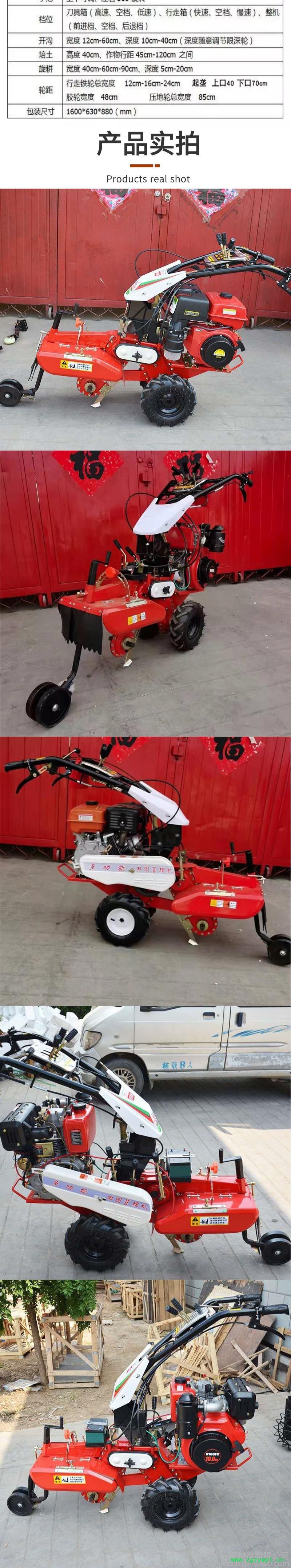机器本身耕作不留死角,机身轻巧灵活,把手可360度旋转,上下180度自由调整,操作简单,老少皆宜。田园管理机尤其是大葱,大姜、土豆、甘蔗、葡萄等经济作物的作物的开沟培土等作业,高·效快捷,方便好用。体积小、重量轻。适合多种地形环境作业,一机多用,是目前小型农机领域的先进产品。