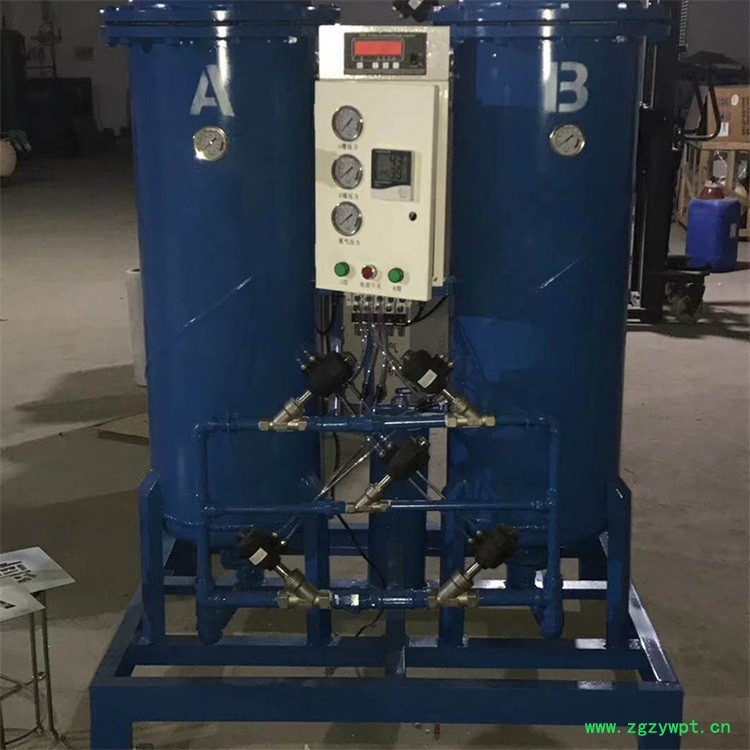 制氮机(制氮设备也称制氮装置)是以压缩空气为原料,利用一种叫作碳分子筛的吸附剂对氮、氧的选择性吸附,把空气中的氮分离出来。碳分子筛对氮、氧的分离作用主要是基于氮、氧分子在分子筛表面的扩散速率不同。较小直径的氧分子扩散较快,较多地进入分子筛固相;较大直径的氮分子扩散较慢,较少进入分子筛固相。这样,氮在气相中得到富集。一段时间后,分子筛对氧的吸附达到一定程度,通过减压,被碳分子筛吸附的气体被释放出来,分子筛也**了再生。这是基于分子筛在不同压力下对吸附气体的吸附量不同的特点。变压吸附制氮设备通常使用二个并联的吸附器,交替进行加压吸附和减压再生,操作循环周期约2分钟。