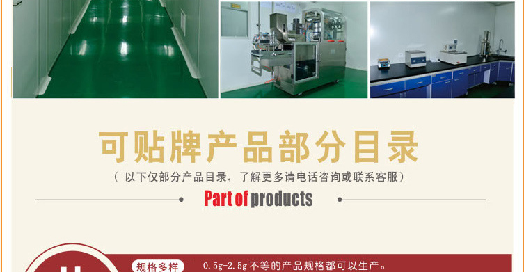 山东康美药业有限公司是一家集研发生产为一体的生产加工企业,拥有十几年的oem贴牌代加工经验,本公司能做剂型有:片剂、粉剂、颗粒剂、口服液、易拉罐饮料、消杀、袋泡茶、贴剂、膏剂等剂型,另有上百种自主**产品可供选择代理,详情请咨询客服或者电话联系:17753702081