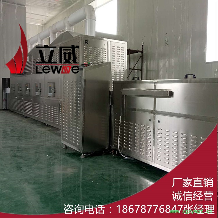 制药微波干燥杀菌设备的应用,中药材采收后,除鲜用外,一般都必须进行初步处理与烘干,是中药材流通过程中不可缺少的环节,其中药材烘干是极为重要的环节,选用什么样的中药材烘干设备可直接影响产品的品质及外观?传统的烘干方法是靠太阳晒干,工效低、时间长、受天气变化影响大,如短时间不能将产品完全干燥,将会发生霉变和腐烂。而选用大型中药材烘干设备价格贵,加之用电成本高,难以被广大农户接受。针对以上问题,立威微波设备有限公司**研发了一款小型的微波中药材烘干机,该设备烘干时间短、速度快、使用灵活、价格便宜,在烘干的过程中还可以达到杀菌、杀虫的效果,烘干后的中药材,成品品质好,可很好的保持原有的营养成分,颜色自然。但由于鲜药材烘干过程脱水量比较大,微波烘干设备用于鲜药材的烘干**弊端**是耗电量高,如果当地电费比较低还是比较有利的。目前,微波药材烘干机主要用于中药材的二次烘干及杀虫、灭菌**有效。为防止霉变和腐烂,大多数农户采用硫磺浸泡烘干或硫磺燃烧密闭烘烤,易造成硫磺残留量的超标。而微波中药材杀虫设备能在低温下杀死药材中的各种霉菌和虫卵**大限度的保留中药材中的有效药成分,防止储存过程中产生的霉变和虫蛀。 微波中药材烘干机适用范围:用于中草药材、中药丸(水丸、水蜜丸)、药粉、中药饮片、口服液、中药浸膏及各种条状、块状、颗粒状、粉末状、膏状等药制品的烘干、灭菌、杀虫、加热、萃取不同工艺的处理。