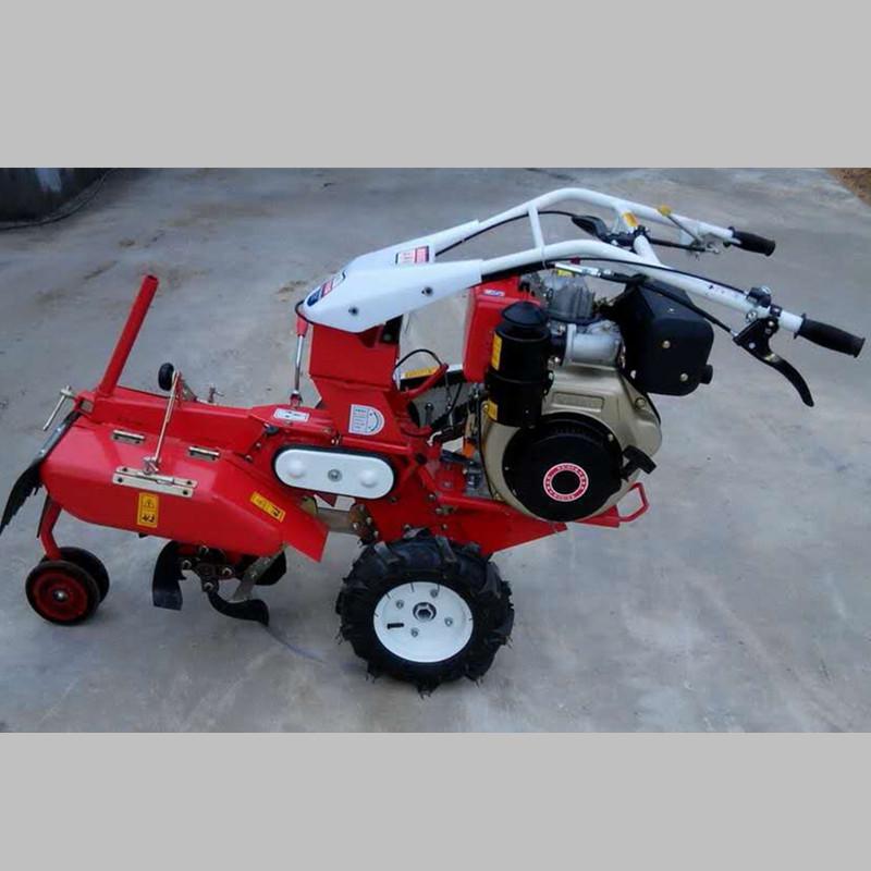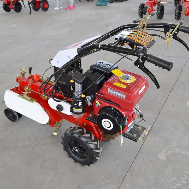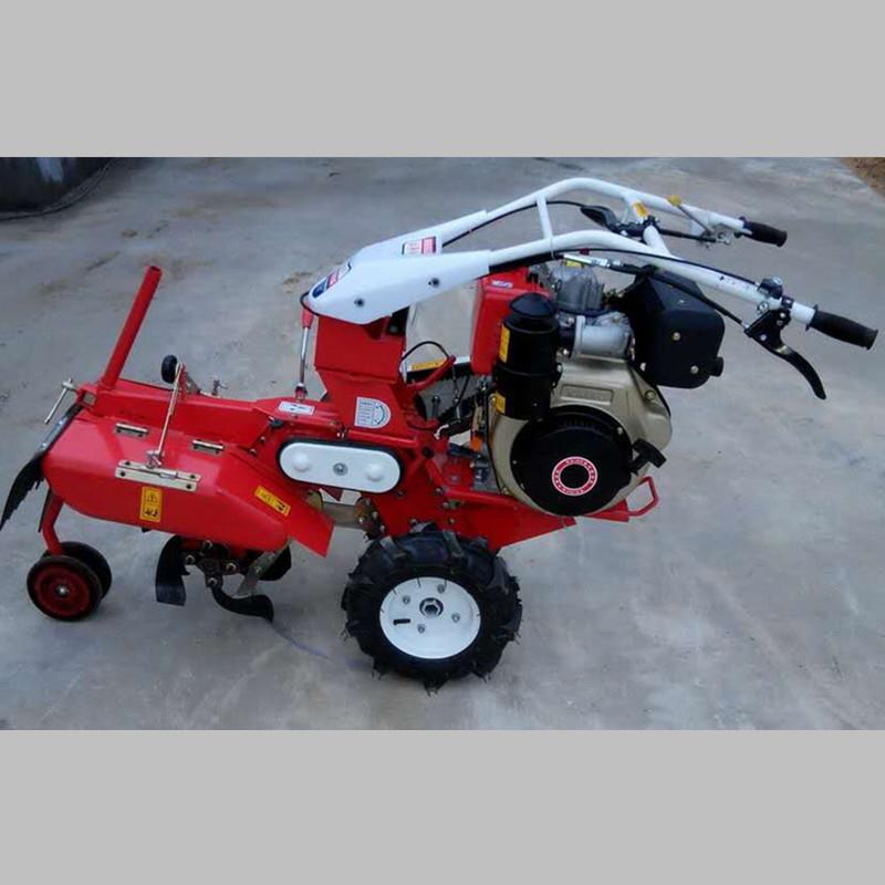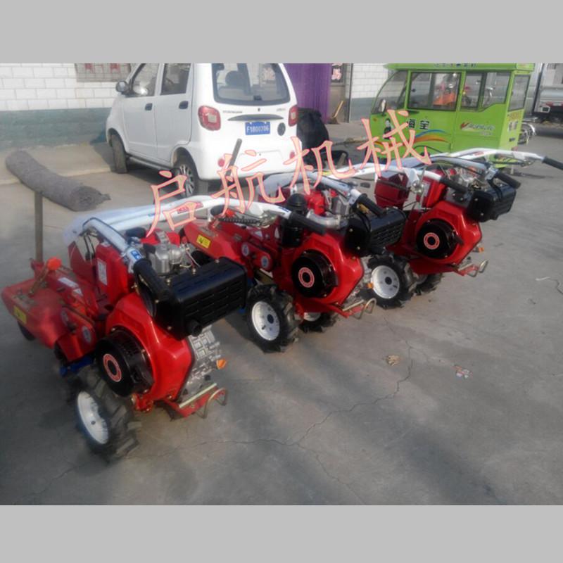 普航客服在线QQ:3582344394电话:0537-4481212 手机:15634472694本机器包括机架、可调高低扶手,机架上设有(风冷或水冷)柴油机或汽油机、机架和扶手上设置有变速箱,变速箱的输出轴上设置有能够沿轴移动的驱动轮或链轨.传动方式主要有:全齿轮传动、皮带传动、链条传动三种传动方式.该机具有重量轻,油耗低、相对功率大,结构紧凑、机动性强、操纵轻便灵活的特点。可爬坡、越埂、阶梯性强。广泛适用于平原、山区、丘陵的旱地、水田、果园、菜地、烟地的深旋耕、浅旋耕、犁耕。配上相应机具可进行旱地旋耕、水田旋耕、抽水、开沟、喷淋、喷药除草碎土等作业,还可牵引拖车进行短途运输,是大中型农机无法**的多功能田园管理机,工作稳定可靠、使用寿命长、维修方便等特点。是进入农民家庭理想的田园管理机。