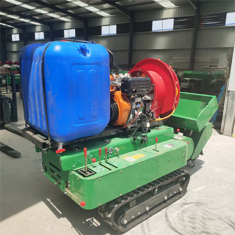 开沟宽度为30厘米,开沟深度为0~40厘米可调,作业速度为每小时450米~1200米;施肥深度为0~35厘米可调,旋耕装置宽为105厘米可定制120厘米,除草90厘米;回填装置宽为155厘米;喷药装置总高度为130厘米可加高50厘米自由拆装,全套总重1.1吨。车辆行走速度约为每小时0.5~5公里,分高低6个前进档位和2个到退档位,在机器左侧手动操作。该机动力采用28马力单缸柴油机,发动机为中置,行走变速箱和传动变速箱分开在丘陵地区开沟施肥作业时不用外加配重,箱内全部为齿轮传动,结实耐用。行走采用橡胶履带,行走直线性和通过性好,与地面接触面积大,不易打滑。开沟刀采用65锰钢自制,刀刃全部用耐磨焊条加强焊制,比普通开沟刀结实耐用至少10倍;采用蛟龙式强制排肥,下肥量可调,每米0.5~15斤,并且干的小块牛羊粪可通过施肥自动回填装置直接施肥,大块农家肥可通过单独开沟进行施肥;喷药采用风送式进口防滴漏陶瓷喷嘴和高效药泵,陶瓷片可更换,喷药幅宽5-10米,喷药高度5-8米,并且每个喷头可单独开关,大小可调方向可调,药箱为304不锈钢容积300升即600斤水。
