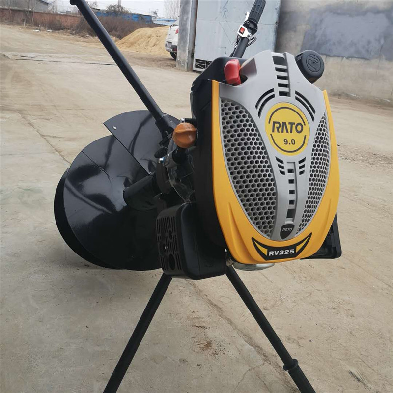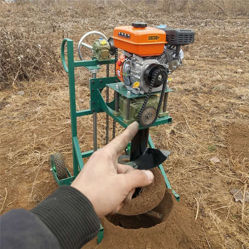 3.挖到预定深度后,缓慢提起挖坑机,在挖坑机钻头离开地面后, 松开工作开关,完成挖坑过程。植树挖坑机是一种以汽油机为动力的便捷式挖坑工具,该机器体积小,动力大、方便携带、适合植树造林、果园种植、大棚建设、沙漠绿化等。这是一款非常适合我国地形状况的机器,目前发展、销售、使用空间巨大。挖坑机种树、打桩一机多用,安全可靠,产销一体化,量大从**量有保障。