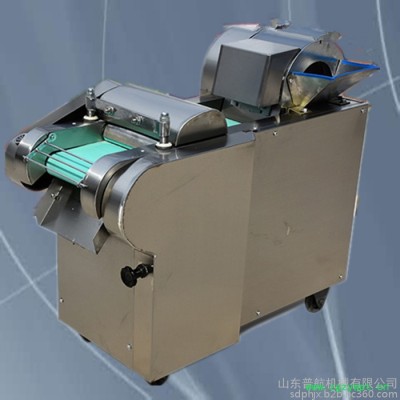 多功能型切菜机包含单切机的所有功能的同时,也可切圆形如土豆、萝卜等。 可将根、茎、叶等蔬菜加工成片、丝、丁、菱、曲线、花丁、花片等。切片装置用于硬菜(萝卜、土豆、水果、薯类)的切片,厚度可自由调整;往复竖刀将刀成的菜片或软菜(韭菜、芹菜)切成直丝或段、曲线丝、方丁(或形刀)输送带可自由调整。所调整量即为丝段的宽度;应注意被切菜直径较粗时(大于30毫米)出片效果才好,便于切丁,直径小时制的片或丁将会杂乱。被切菜加工面平整光滑、规则,组织完好,保持手工切制的效果。