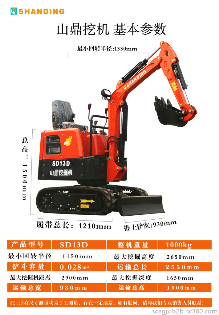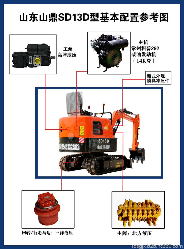 山鼎SD13D小型挖掘机广泛应用于果园苗圃、园林绿化、山地开荒、农田改造、开挖自来水机电缆管道、室内拆除、地面破碎、蔬菜大棚、养殖场、各种矿井及隧道施工、河道清淤等农林牧业种植、小型土方工程、市政工程的各种作业环境。