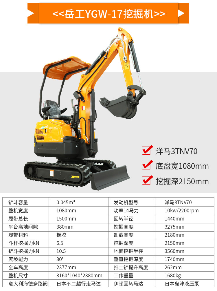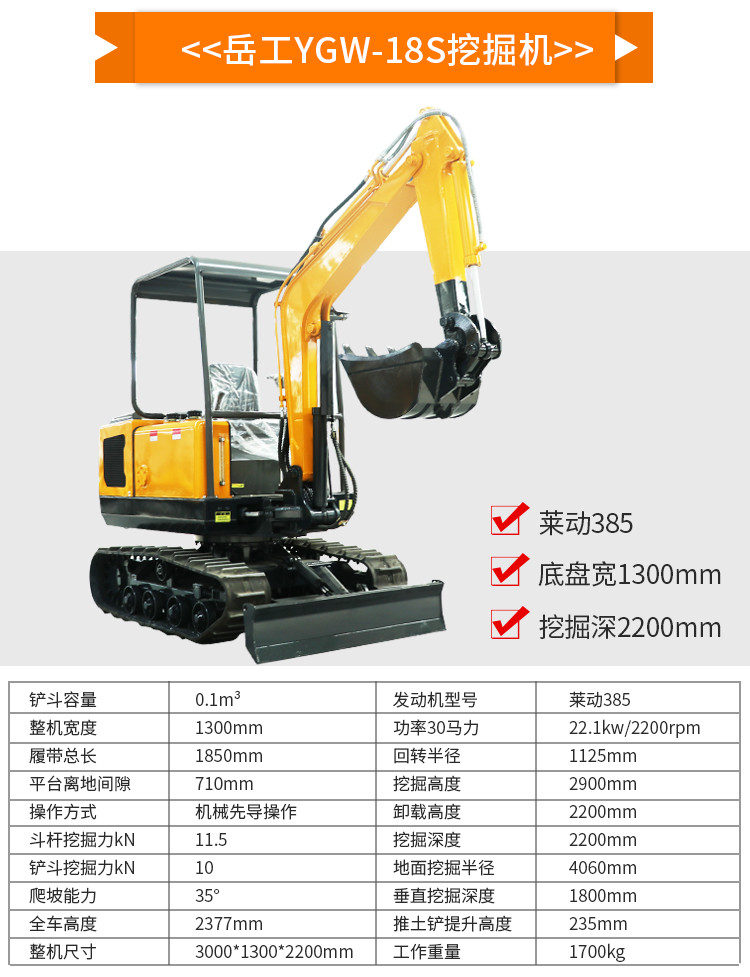履带式小型液压挖掘机产品特点