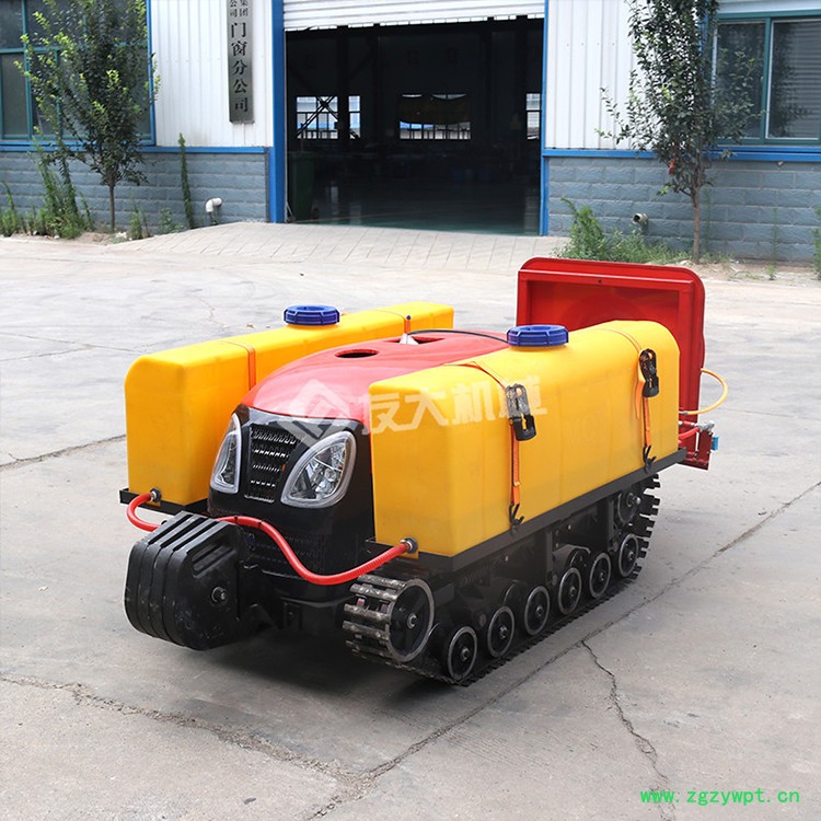 履带与地面接触面积大,牵引力大,6个轮子稳定性高,也是造坦克的技术人员帮设计生产的,更换农具方便快捷,遥控操作 人机分离 结构紧凑