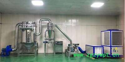 中药材低温粉碎机由超微粉碎机+冷风机组成,超微粉碎机粉碎细度80-400目