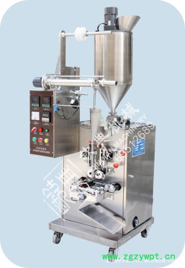 本机是我厂开发制造的立式、三边封合、间歇式高精度液体包装机。制袋、充填、封合、打印批号、切断、计数等全过程自动完成,尤其适用酱油、酒、醋、果汁饮料、配制饮料、豆奶、牛奶、花生油、菜油及各种植物油、矿泉水和液体化工产品的单膜袋状。