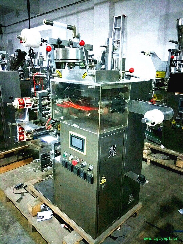 本机是一种新型热封式,多功能全自动袋泡茶饮品包装设备。该机的主要特点是内外袋一次成型,避免了人手与物料的直接接触,提高效率。内袋为过滤棉纸,可自动带线带标签,外袋为复合纸。其好处在于:贴标和外袋均可采用光电定位,包装容量、内袋、外袋、标签等均可任意调整,可根据用户的不同需要来调整内外袋尺寸,以便达到理想的包装效果,提高产品外观档次,使产品价值提升。