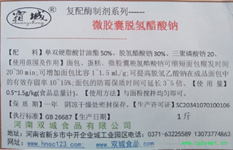 微胶囊脱氢醋酸钠可缩短面包醒发时间20-30min;可增加面包比容1-1.5ml/g;可提高脱氢乙酸钠在成品面包中的有效存留率10-15%,面包的防霉保质时间可延长3-5倍。