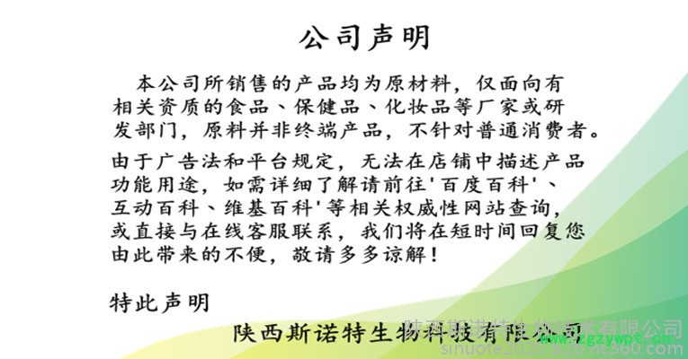 我厂专业生产提取物原料,采用高质量原材料进行生产。每个生产流程都严格把控,再确保每样产品都是合格后,方可出厂销售!客户的满意**是我们一贯的追求!