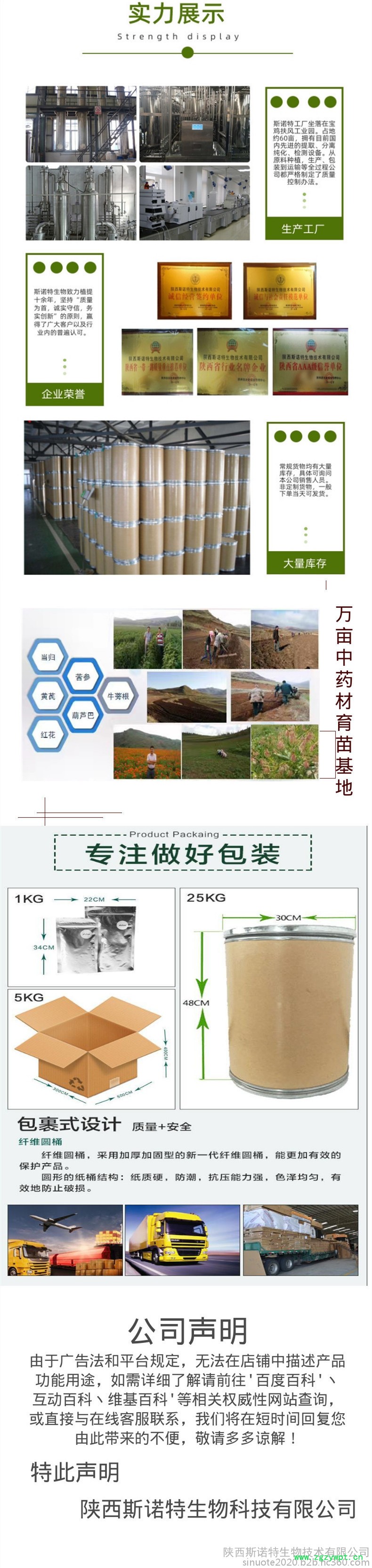 我厂生产提取物原料,采用高质量原材料进行生产。每个生产流程都严格把控,再确保每样产品都是合格后,方可出厂销售!客户的满意**是我们一贯的追求!