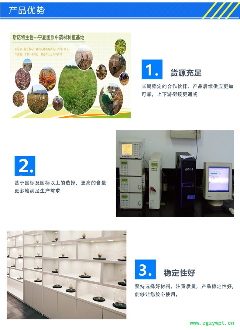 我厂生产提取物原料,采用高质量原材料进行生产。每个生产流程都严格把控,再确保每样产品都是合格后,方可出厂销售!客户的满意**是我们一贯的追求!