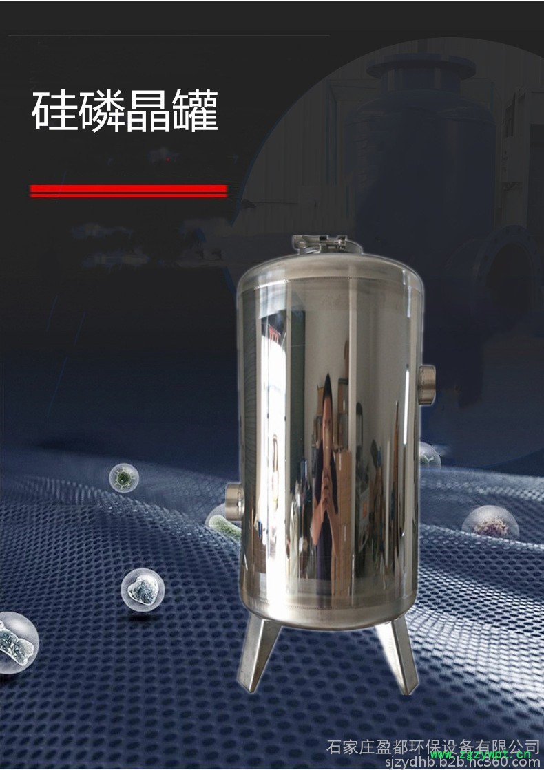 当水通过导流管进入一道滤网底部,硅磷晶在滤网上部。水通过滤网,硅磷晶,从第二道滤网出口流出。需要清洗时,关闭进出水阀,打开排污阀,排尽罐内积水,旋开罐体上部螺塞,拆卸法兰盖,清洗后重新装入即可。