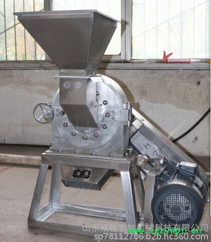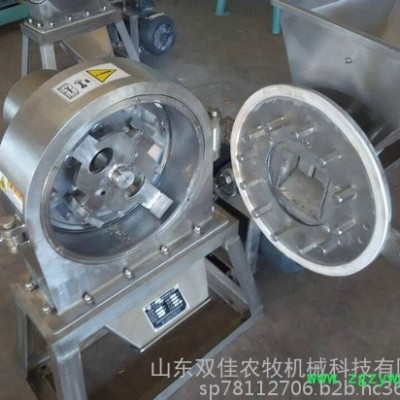 山东双佳农牧机械科技有限公司所生产的粉碎机系采用304号不锈钢制作,配套国标电机,主要用于化工材料、中 药材含树根、树枝以及块状类物料、各种含油量不高的粮食、五谷杂粮以及其他一些硬性、脆性的物料。利用活动齿盘和固定齿盘间的相对高速运转,使被粉碎物经齿盘冲击、摩擦及物料彼此间碰撞而获得粉碎。粉碎物可直接从磨腔中排出,经出料口出来,物料经过粉碎后装入布袋收集,粉碎后的物料收集在袋内,空气则从布袋的细小孔眼出来,不会将细粉排出,从而起到不浪费,不污染的效果。粗细可更换不同目数的筛网调节。