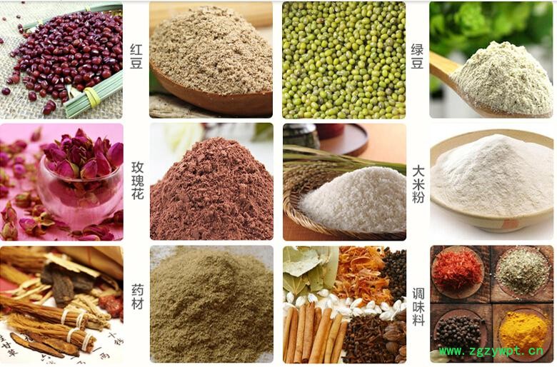 本机应用范围广,可广泛适用于主要用于食品、化工材料、树枝以及块状类物料、含油量不高的粮食、五谷杂粮以及其他一些硬性、脆性的物料等行业的物料粉碎之用。本机可用于以下物料的粉碎: