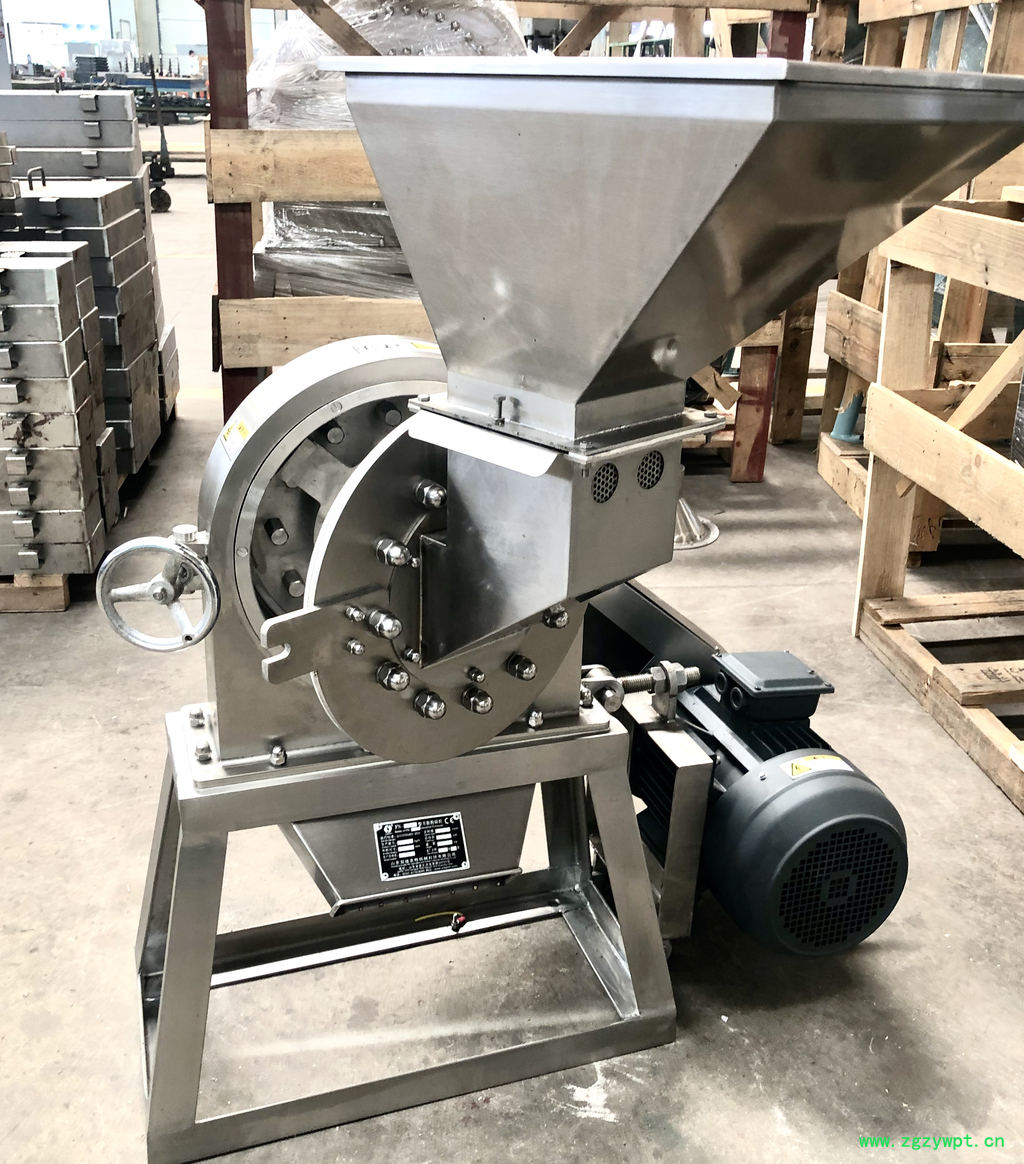 不锈钢粉碎机是一种多功能机,在平常生活作业中又称食品粉碎机、双面齿盘粉碎机、多功能粉碎机、化工粉碎机、制剂粉碎机。不锈钢粉碎机结构简单、运转平稳、易清冼、粉碎良好,被粉碎物可直接由主机磨腔中排出、粒度大小通过换不同孔径的网筛获得,不锈钢粉碎机为全不锈钢材料制造。粉碎机机壳内壁经机加工达到表面平滑,改变了以前机型内壁粗糙、积粉的现象,使药食品、化工等生产更符合行业标准。不锈钢粉碎机适用于化工、冶金、食品、建筑等行业。对坚硬难粉碎的物料进行加工,包括对塑料、铜丝、橡胶等进行粉碎,也能作为微粉碎机、微粉碎机加工前道工序的配套设备。一般物料细粉碎细度为80-120目.
