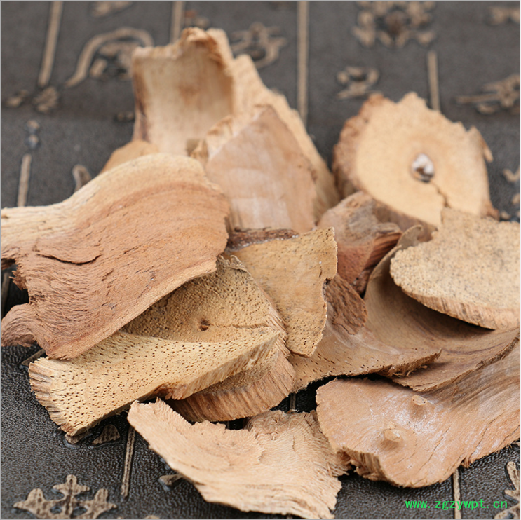【药材性状】不规则椭圆行片状 木质易碎