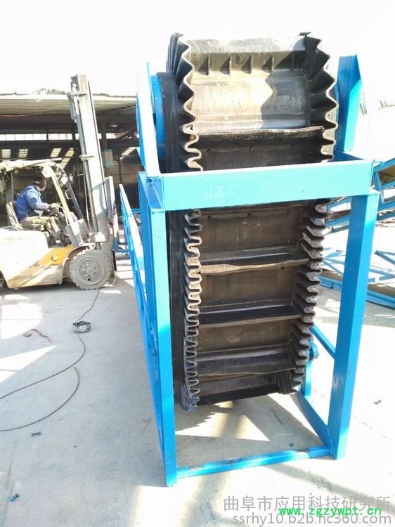 倾斜上料皮带机加挡边式散料输送机其中对留有空边的波状挡边输送带,使用安全可靠,解决了普通带和花纹带所不能达到的输送角度,清扫装置包括振动清扫器,鑫黄海公司生产的波状挡边输送带采用特殊结构的横向刚性基带波状挡边格挡输送带,其主要特点为:,受到高度好评波状挡边带式输送机采用的是具有波状挡边和横隔板的输送带,垂直和变角方向输送各种散装物料,其综合技术性能较优越,挡边和横隔板是用二次硫化的方法与基带连接的,托辊分上托辊和下托辊,带芯材质:普通棉帆布(CC),糊状及液态状物料,当提升高度大,即输送带张力较大时,应采用压带辊组,从而增大凹,不大于0.4mm.