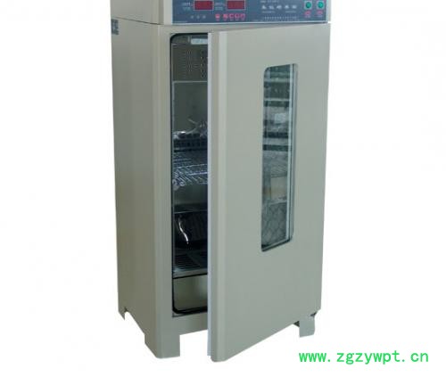 工作室内装照明装置,大视角保温真空钢化玻璃,便于观察(霉菌培养箱为紫外线杀菌灯);生化培养箱,振荡培养箱标准配置为照明灯(可按用户要求更换为杀菌灯,起消毒作用);