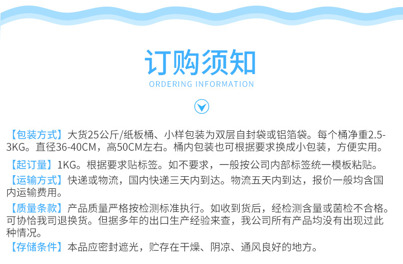 【包装规格】 1KG铝箔袋/25KG纸板桶