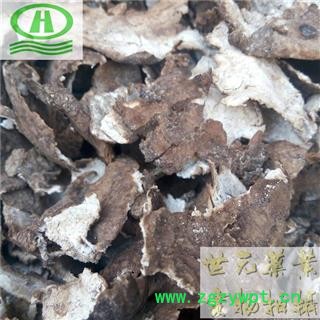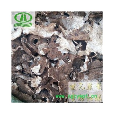 【性 状】不规则片状,不规则状卷曲,内部颜色为黄白色,外部灰褐色