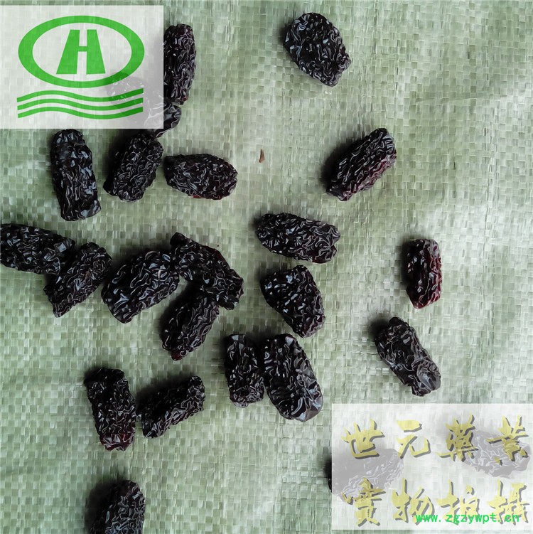 【药材性状】黑色,椭圆形,表皮多皱褶,有光泽感,长度2cm左右,直径1cm左右,口味甜