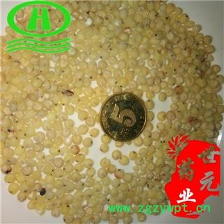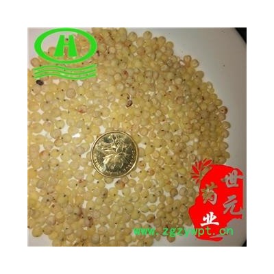 【性 状】生秫米呈小球形,直径约1mm。表面类白色,一侧面可见一凹槽,断面白色。质硬富粉性。气微味甘