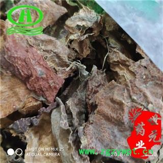 【性 状】本品呈不规则卷筒状,厚1-2mm。外表面黄褐色,上有深褐色疣状突起及黄白色或黄色网状花纹;内表面黄白色,有皱纹。质轻而柔韧