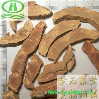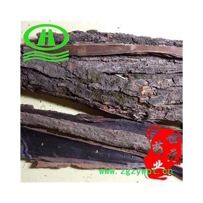【性 状】呈块片状,大小不等。长约20~30厘米,宽2~3厘米,厚3~5毫米,皮片多呈卷曲状。外表栓皮棕褐色,皱缩,有小支根脱落的痕迹,但不具明显的皮孔,栓皮易脱落;内表面黄白色,平滑细致,有细小的网状纹理;断面不平整,有纤维(即皮层及韧皮部纤维),撕之不易成薄片。久置氧化反应皮质会变为紫褐色,属于正常