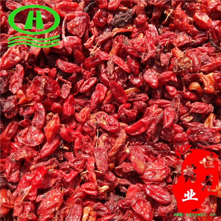 【性 状】呈不规则的片状或囊状,长1-1.5cm,宽0. 5-1cm。表面紫红色至紫黑色,皱缩,有光泽。顶端有的有圆形宿萼痕,基部有果梗痕。质柔软。气微,味酸、涩、微苦。