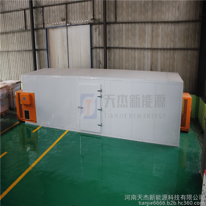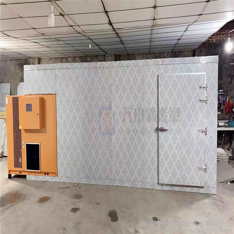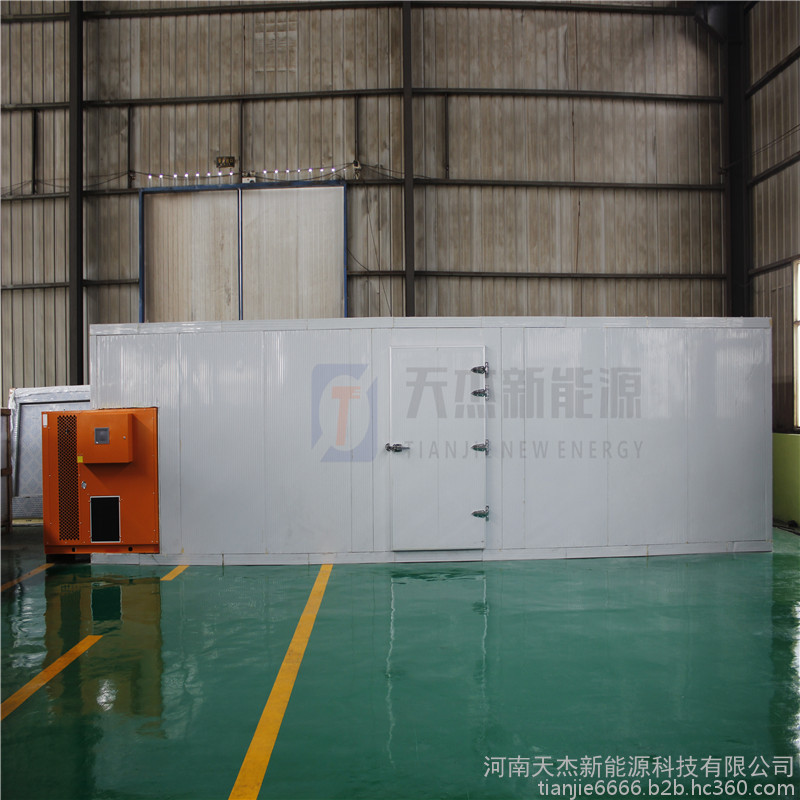 玄参烘干机通过压缩机做功,驱动管路中的传热工质吸收外界环境中的热量(空气中的热量)在进行压缩做工使其变成高温高压气体,再通过换热装置将热量释放到烘干房内,通过热风循环系统进行不断烘干的过程。
