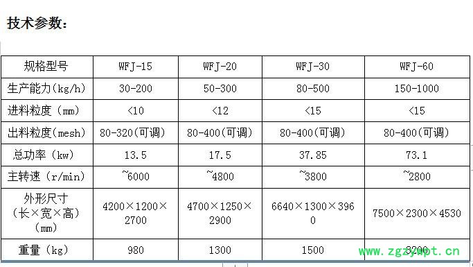 此机针对粉碎细度要求在120目及以下的物料都能粉碎,物殊性物料可特殊对待,增加不同的配置。